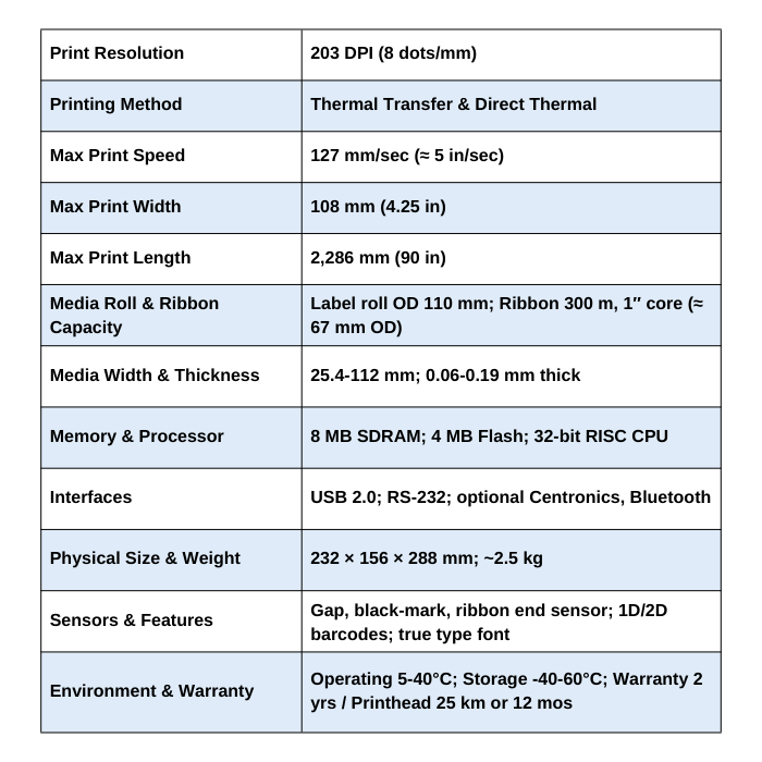 The TSC TTP-244 is based on the best selling TTP-244 platform, features such as legendary Dual-Motor design, and industrial standard media capacity. With its small, compact footprint, it is perfect for a variety of label and tag printing applications. The TTP-244 can print a wide variety of labels ranging from low volume shipping labels to compliance and general purpose product identification labels and tags.