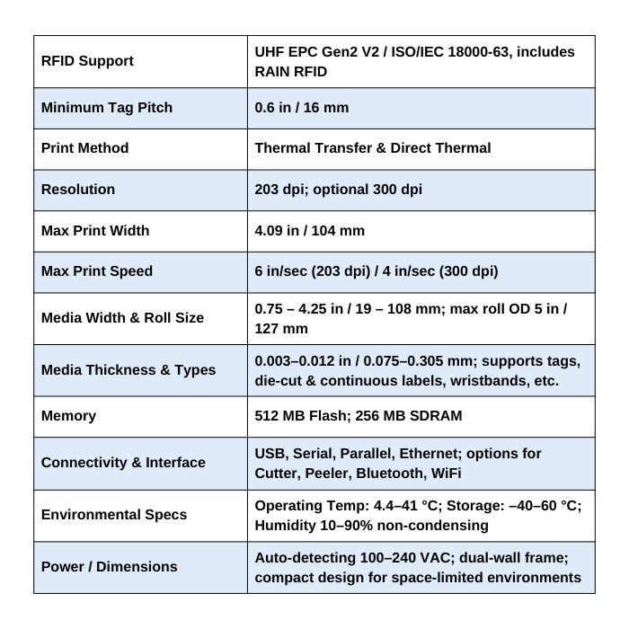 Small in size but full of features, the ZD500R is Link-OS-enabled making it simple to integrate and manage. With automatic calibration, you'll enjoy lower media cost, less waste and fewer roll changes. Featuring UHF RFID encoding capabilities, it is ideal for numerous applications such as retail tagging as well as manufacturing, government and healthcare tracking.